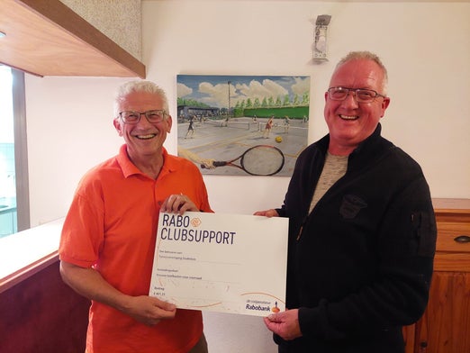 John Hoffer heeft dit bedrag namens de Rabobank overhandigd aan Jan Beekhuizen, onze voorzitter.