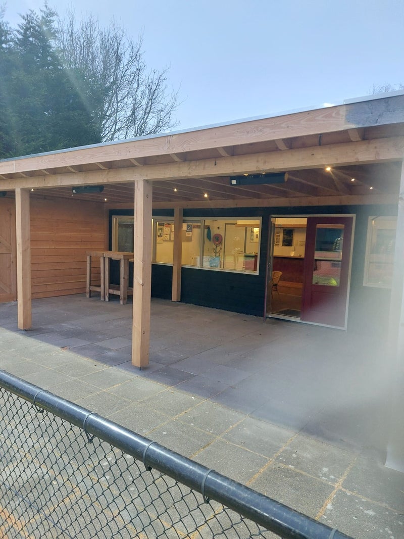 Op 29 maart kwam Henri van Klaveren het zeildoek ophangen wat zijn bedrijf Klavertje 4 heeft gesponsord. Nu is het helemaal klaar.
